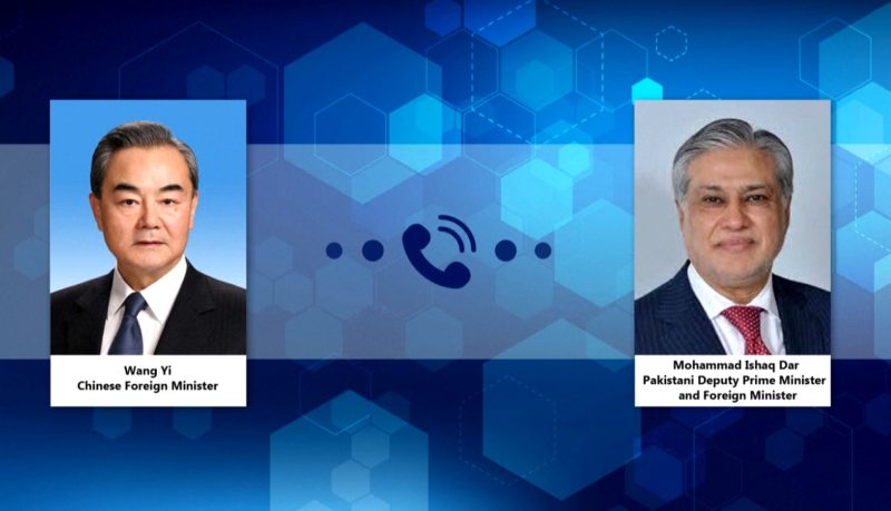 এপ্রিল ১৪: চীনা কমিউনিস্ট পার্টির কেন্দ্রীয় কমিটির পলিট ব্যুরোর সদস্য এবং দেশের পররাষ্ট্রমন্ত্রী ওয়াং ই, গতকাল (সোমবার), পাকিস্তানের উপ-প্রধানমন্ত্রী ও পররাষ্ট্রমন্ত্রী ইসহাক দারের সাথে টেলিফোনে কথা বলেন।